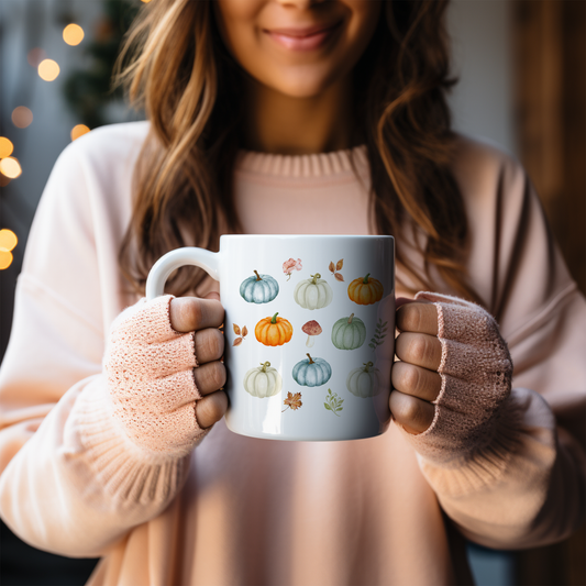 Cozy Pumpkin Coffee Mushroom Mug - Rustic Autumn - Fall Vibes Mug 11oz