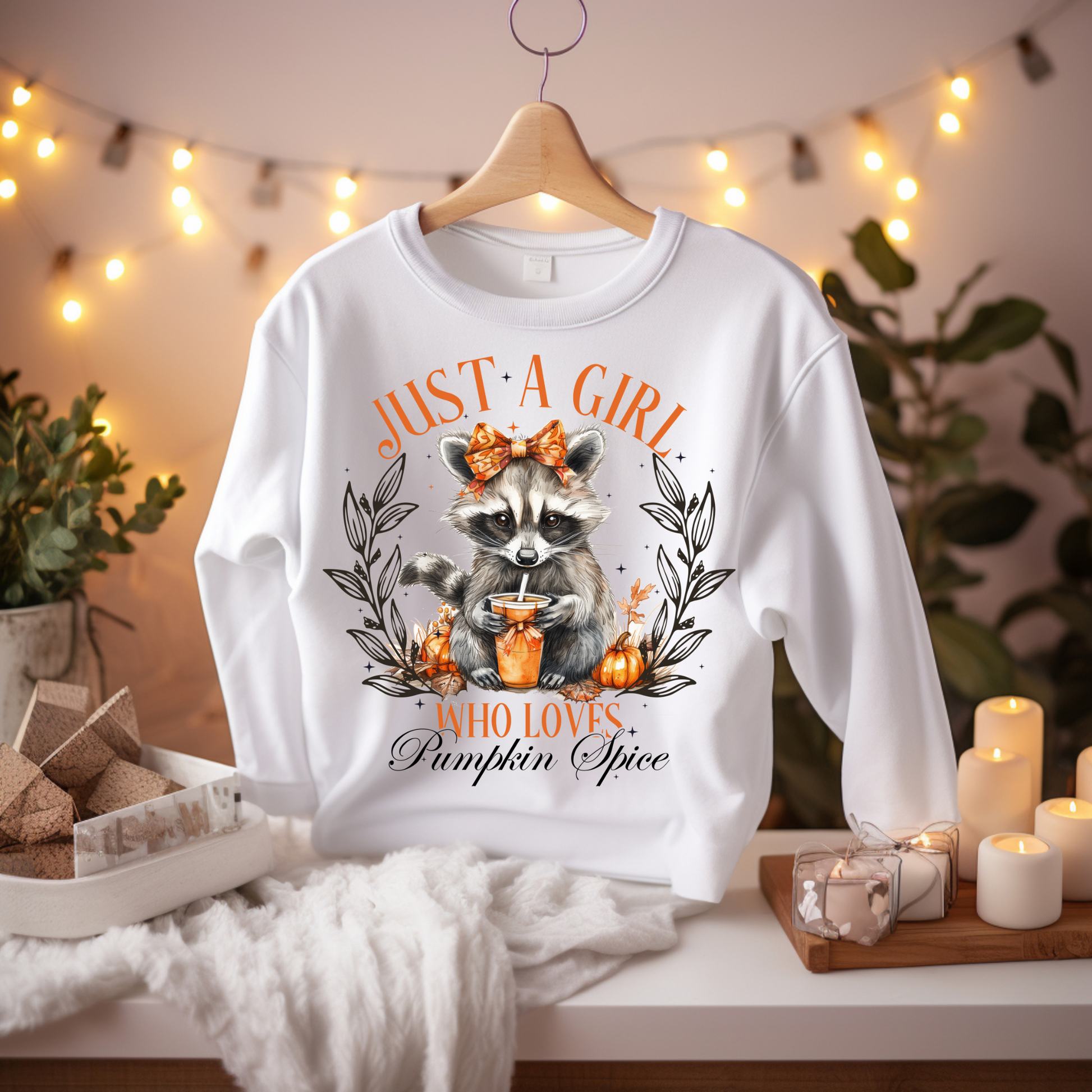 Get ready for the ultimate fall vibes with this cozy fall sweatshirt featuring the phrase "Just a Girl Who Loves Pumpkin Spice." Whether you're sipping your favorite pumpkin spice latte or taking a brisk walk through the autumn leaves, this crewneck sweatshirt is perfect for keeping you warm and stylish all season long. It’s great for layering or wearing on its own during those crisp fall mornings. Perfect for pumpkin spice lovers or as a fun gift for that special someone who just can't get enough of all things fall!